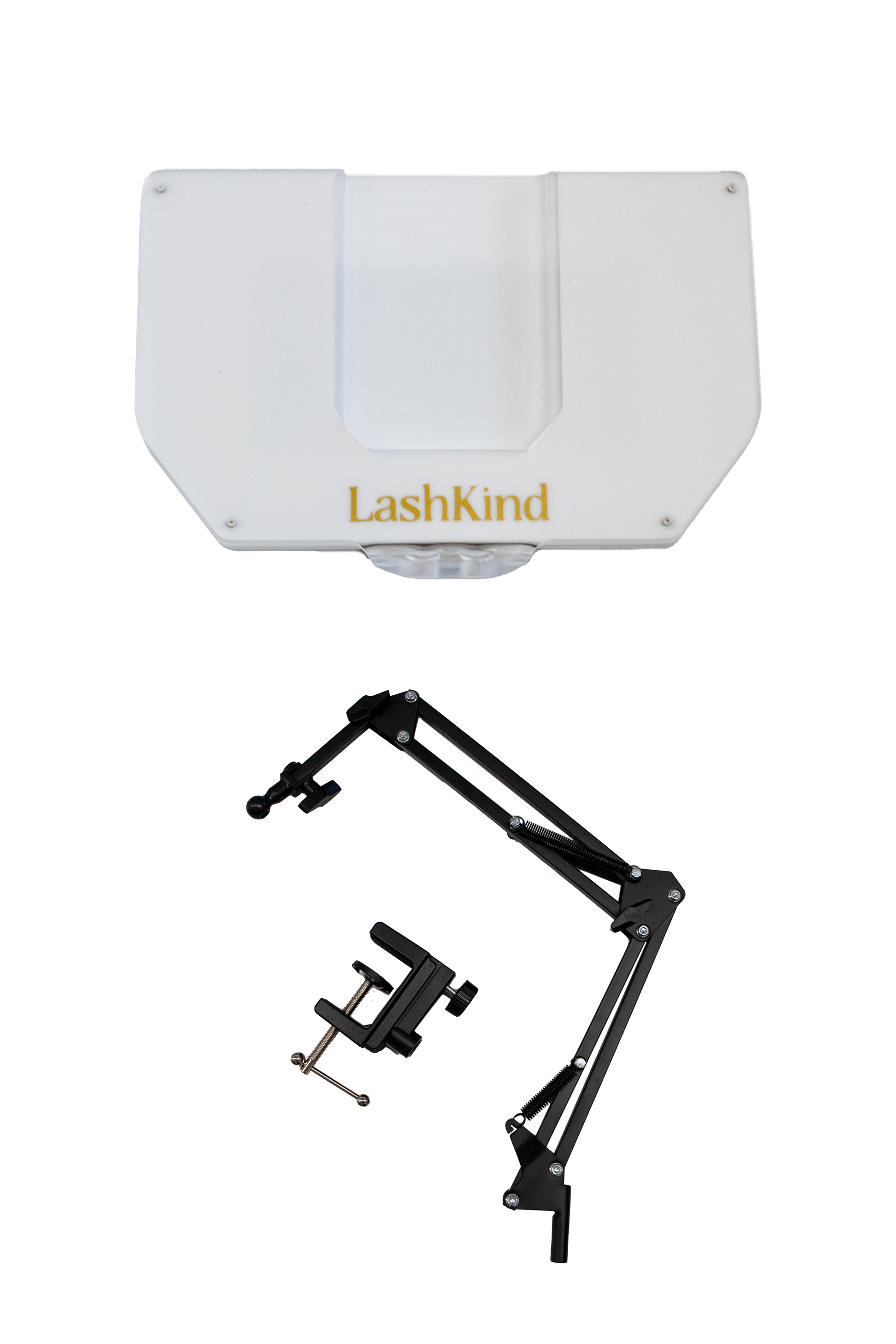 Essential eyelashes holder seen at LashBar™ salons. The plate holds your lash tray for convenient and faster lash times. The flexible arm allows you to position the plate to your optimal angle, height and comfort.